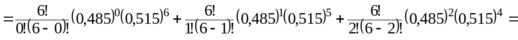 Р(А) = Р6(0) + Р6(1) + Р6(2) =