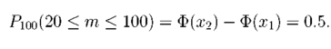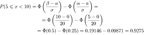 По таблице значений функции Φ(x) найдем Φ(x1) = Φ(0) = 0, Φ(x2) = Φ(20) = 0.5. Искомая вероятность: