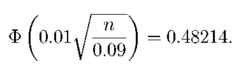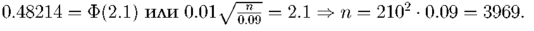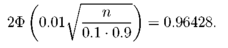 Задача. 1.5.4 Вероятность того, что деталь не стандартная, равна 0.1. Сколько деталей нужно отобрать, чтобы с вероятностью P = 0.964228 можно было утверждать, что относительная частота появления нестандартных деталей отклоняется от постоянной вероятности p = 0.1 по абсолютной величине не более, чем на 0.01 ?