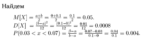 Задача. 2.3.5 Цена деления шкалы амперметра равна 0.1 ампера. Показания амперметра округляются до ближайшего целого деления. Найти вероятность того, что при отсчете будет сделана ошибка, превышающая 0.03 ампера. Найти математическое ожидание, дисперсию ошибки округления отсчета и функцию F(x).