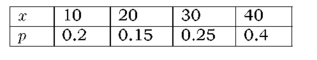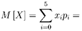 M[X] = x1p1 + x2p2 + x3p3 + x4p4 = 10 · 0.2 + 20 · 0.15 + 30 · 0.25 + 40 · 0.4 = 28.5