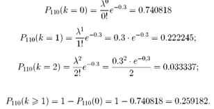 n = 110, то λ = np = 110 • 1 /365 = 0.3.