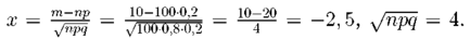 Решение. Имеем п = 100, p = 0.2, q = 1 - p = 0.8.