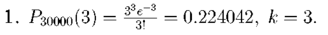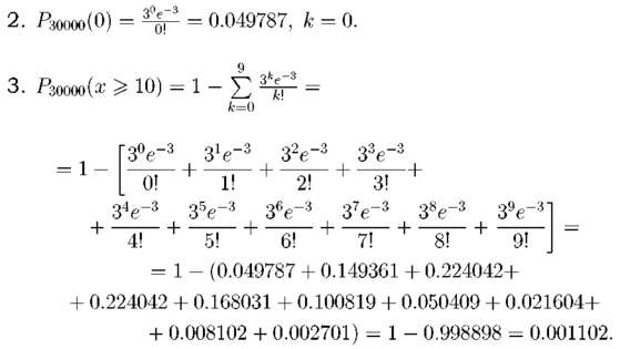 Найдем λ : λ = пp = 30000 • 0.0001 = 3 = М[Х]. Искомые вероятности: