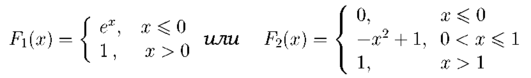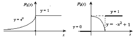 Функция F2(x) не является функцией распределения, так как не является неубывающей. Функция F1(x) является