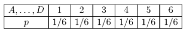 Тогда M[A] = M[B] = M[C] = M[D] = (1+2+3+4+5+6) / 6 = 3.5