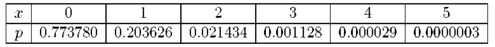 0 • 0.7737809 + 1 • 0.2036267 + 2 • 0.0214343+