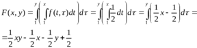 Условия независимости случайных величин (в общем, дискретном и непрерывном случаях). Пример: независимость компонент случайного вектора, равномерно распределенного на прямоугольнике. СВ X и Y называются независимыми, если F(x,y) = FX(x)FY(y). Пусть Z – случайный двумерный дискретный вектор. Дискретные СВ X и Y, составляющие вектор Z, независимы тогда и только тогда, когда для всех i=0,n; j=0,m P{X = xi, Y = yi} = P{X = xi}P{Y = yi}. Для независимости непрерывных СВ Х и Y достаточно, чтобы выполнялось равенство f(x,y) = fX(x)fY(y). П ример: Случайный вектор Z распределен равномерно на прямоугольнике [1,1]x[2,3] и имеет функцию распределения ½(xy-x-y+1) на площади прямоугольника. Независимы ли его компоненты? Решение: Вектор по условию составлен из двух равномерно распределенных случайных величин X и Y. X ~ R(1,2); Y ~ R(1,3). fX(x) = 1/(2-1) = 1 при X [1,2]. fY(y) = ½ при Y [1,3]. Если компоненты X и Y независимы, то f(x,y) = fX(x)fY(y). Получаем следующее: Теперь найдем функцию распределения, проинтегрировав f(x,y) по области прямоугольника. При Х, Y [1,1]x[2,3]. При X > 2, Y > 3 F(x,y) = 1. При X < 1, Y < 1 F(x,y) = 0. Полученная функция совпадает с заданной в условии. Компоненты независимы. | -