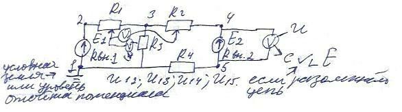 Вспомогательная схема – содержит все сопротивления и одну ЭДС, удалённые источники заменяются их внутренними сопротивлениями.
