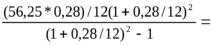 А=(120*0,27/12*(1,04550625))/(1,04550625-1)= 62,03250927 (тыс. руб.)