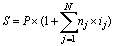 В условиях нестабильной экономики банки и другие кредиторы с целью снижения своего процентного риска могут устанавливать переменные ставки процентов для различных финансовых операций. Например, по ссуде в размере 2 млн. рублей общей продолжительностью 120 дней в течение первых двух месяцев будут начисляться 30% годовых, а начиная с 61 дня ежемесячно простая процентная ставка будет увеличиваться на 5% (обыкновенные проценты). Фактически, ссуда разбивается на несколько составляющих, по каждой из которых установлены свои условия. Необходимо найти наращенные суммы по каждой из составляющих, а затем сложить их. Вспомним, что аналогом процентной ставки в статистике является показатель “темп прироста”. При начислении простых процентов следует говорить о базисных темпах прироста, т.к. первоначаьная сумма P остается неизменной. Данная задача в статистических терминах может быть интерпретирована как сложение базисных темпов прироста с последующим умножением на первоначальную сумму займа. Общая формула расчета будет иметь следующий вид: