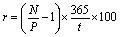 = ln (10 / 8,2) / (40 / 365) ≈ 203,6%