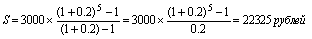 В нашем примере член ренты R неизменен в течение всего срока, процентная ставка i также постоянна. Поэтому наращенную величину ренты можно найти как сумму геометрической прогрессии с первым членом 3000 и знаменателем (1 + 0,2):