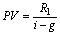 Данная формула имеет смысл при g < i. Она применяется в оценке обыкновенных акций.