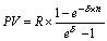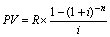 Так как в нашем примере i и R постоянные величины, то снова применяя правило суммирования геометрической прогрессии, получим частную формулу дисконтирования аннуитета: