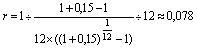 Если же взносы на депозит производить ежемесячно (p = 12), то, снова применяя формулу (6), и деля полученный результат на 12, найдем: