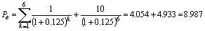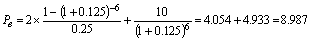 Внутренняя стоимость облигации теперь несколько ниже и составляет 8,987 тыс. руб. Этот же самый результат будет получен, если применить формулы (1) и (5):