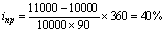 Рассмотрим несколько примеров расчета доходности краткосрочных инвестиций (продолжительностью менее 1 года). Как уже отмечалось, в данном случае применяется ставка простых процентов, поэтому большое значение имеет способ подсчета числа дней в периоде, а также метод определения продолжительности года (временной базы). Подробнее об этом говорилось в параграфе. 2.1.1. По 90-дневному банковскому депозитному сертификату, купленному за 10 тыс. рублей, в конце срока его действия получен доход в сумме 1 тыс. рублей. Фактическая доходность за 90 дней составила 10% (1 000 / 10 000), годовая доходность в предположении, что год равен 360 дням будет равна 40%:
