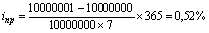 для Р = 10 млн. рублей, S = 10 млн. 1 тыс. рублей, t = 7 дней, K = 365 дней
