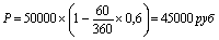 То есть, ставка дисконта, установленная по векселю не отражает его фактической доходности, а является номинальной величиной, используемой только для определения абсолютной суммы дохода. Это относится и к случаю, когда ставка дисконта установлена в годовом исчислении. Например, по вышеупомянутому векселю известен его номинал, срок и годовая учетная ставка 60%. Тогда, применив формулу банковского учета (2.1.8), сначала найдем продажную стоимость векселя: