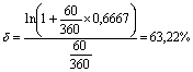 – по сложной непрерывной процентной ставке (силе роста δ) – 63,22%.