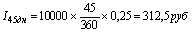 Если по условиям сертификата на него начислялись простые проценты из расчета 25% годовых, то сначала следует найти их общую сумму, причитающуюся владельцу за 45 дней. Применив формулу (2.1.3), получим: