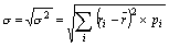 Квадратный корень из дисперсии называется средним квадратическим или стандартным отклонением σ: