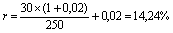 Например, на рынке имеется предложение обыкновенных акций по цене 250 рублей за 1 шт. Известно, что в прошлом году по ним был выплачен дивиденд в сумме 30 рублей на 1 акцию. В дальнейшем ожидается непрерывный рост дивиденда на 2% в год. Ожидаемая доходность акции составит: