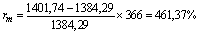 Например, фактическое значение индекса S&P 500 составило на 10 мая 2000 года 1384,29, на следующий день оно достигло уровня 1401,74. Темп прироста за день (дневная доходность “средней” акции) равен 1,26%. Аннуилизировав этот результат по ставке простых процентов (временная база – 366 дней), получим: