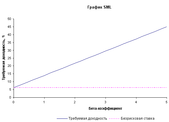 Рисунок 5.6.2. Взаимосвязь уровня β-коэффициента и требуемой доходности