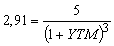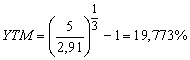 Предположим, что вместо эмиссии купонной облигации, предприятие предпочтет разместить дисконтный инструмент с таким же номиналом и на аналогичный срок. Первичная продажа облигаций будет производиться по курсу 60, а через три года предприятие вернет инвесторам номинальную стоимость облигаций. Расходы по эмиссии составят те же 3% от фактической выручки. То есть, в нулевом периоде предприятие получит 2,91 тыс. рублей (5 * 0,6 * 0,97), а в конце третьего года должно будет заплатить 5 тыс. рублей. Применив формулу (2.2.15), получим: