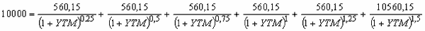 Предположим теперь, что банк согласен на получение всей суммы начисленных процентов в конце срока ссуды, то есть он не настаивает на ежеквартальной выплате процентов. Сначала рассчитаем по формуле (2.2.13) наращенную сумму кредита к концу его срока:
