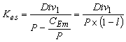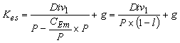 Как уже отмечалось в параграфе 5.3, чаще всего при оценке доходности акций исходят из предположения устойчивого роста дивидендов: сумма доходов, выплачиваемых инвестору по акции, увеличивается с неизменной скоростью (темпом прироста) g. Для изучения подобных процессов используется модель Гордона (см. параграф 3.4). В этом случае доходность акции рассчитывается по формуле (5.3.5). Принимая во внимание расходы по размещению акций на рынке (CEm), получаем цену акционерного капитала (Kes):