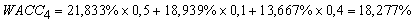 На четвертом интервале предприятие осуществит вторую эмиссию привилегированных акций, которая обойдется ему дороже, чем первая. Цена привлеченного таким образом капитала составит 18,939%. Цены собственного и заемного капитала не изменятся в сравнении с предыдущим интервалом.