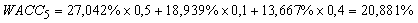 доля заемного капитала (wd) – 40% (200 / 500).