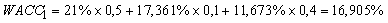 На рис. 6.4.4. не отражены амортизационные отчисления в сумме 25 млн. рублей. Цена этого источника равна WACC1 (16,905%).