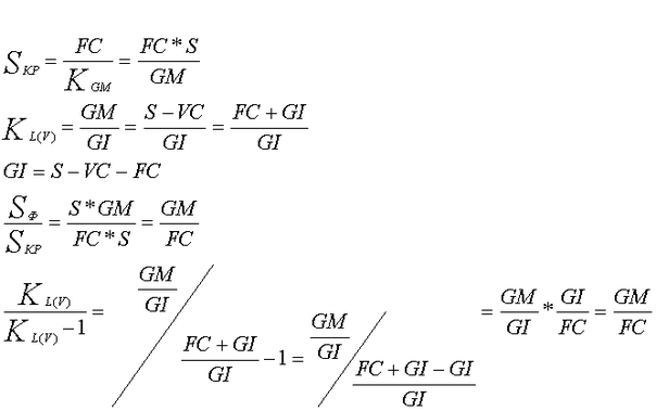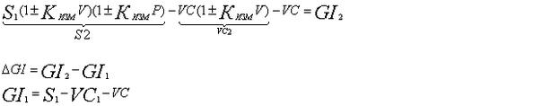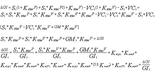 ΔGI / ΔGIбаз = (ΔV(P-vc)) / ((P-vc)*V – FC)