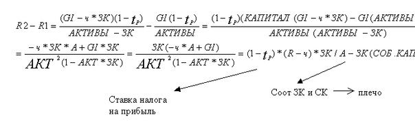 Дифференциал показывает остаток рентабельности от процентных платежей с учетом льгот по налогообложению, а плечо отражает структуру и соотношение видов капиталов.