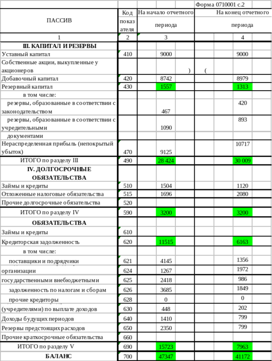 При анализе определяют удельный вес (и его динамику) этих групп. Считается позитивным, если высок удельный вес собственных источников (капитала и резервов) и он растет. Следует учесть, что значительный рост капитала и резервов в последние годы происходит под воздействием переоценки основных фондов.