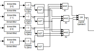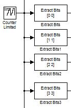 Для извлечения входных сигналов преобразователя, соответствующих значениям битов двоичного кода, используем блок Extract Bits