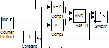 Для имитации источника двоичного кода используем блок Counter Limited, который инкрементируется от 0 до 15, после чего сбрасывается. Таким образом, можно проверить реакцию схемы на все возможные значения. Этот блок можно заменить на любой другой источник, например константу, для проверки верности преобразования.