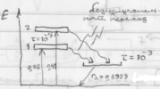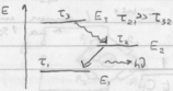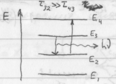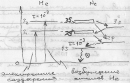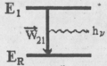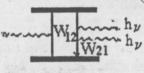 | 52. Внутренняя энергия атомов, молекул, ионов квантована. Кждая молекула может взаимодействовать с электромагнитным излучением, совершая переход с одного энергетического уровня на другой. Энергия поля излучения также квантована, так что обмен энергией между полем и частицами может происходить только дискретными порциями. Частота излучения, связанного с переходом атома между энергетическими состояниями, опр-ся частотным условием Бора: Не все переходы между энергетическими состояниями являются возможными. Для каждого из переходов существует определенная вероятность. При индуцированных переходах квантовая система может переводиться из одного энергетического состояния в другое как с поглощением энергии внешнего поля, так и с излучением энергии. Индуцированное излучение – это вынужденное излучение, стимулируется внешним электромагнитным полем. Индуцированное излучение полностью тождественно излучению, вызвавшего его. Вероятность индуцированных переходов и в единицу времени: ; , где - плотность энергии в единичном спектральном интервале на частоте перехода. Спонтанные переходы из верхнего энергетического состояния Е2 в нижнее Е1 самопроизвольно без внешнего воздействия с излучением кванта hv, т.е. они являются излучательными. Вероятность W21 таких переходов не зависит от внешнего электромагнитного поля и пропорциональна времени. За время dt: . В квантовых системах также играют роль безызлучательные релаксационные переходы. Они играют двойную роль: приводят к уширению спектральных линий и осуществляют установление термодинамического равновесия квантовой системы с ее окружением. | 53. Состояние при котором населенность верхнего энергетического состояния превышает населенность нижнего называется инверсией населенности. Среда, в которой реализуется инверсия населенности называется активной средой (веществом). , где n2 и n1 – населенности верхнего и нижнего уровней. При реализуется инверсия населенности. Источник для создания ИН называется источником накачки. Процесс получения ИН – накачка системы: метод вспомогательного электромагнитного излучения, за счет неупругих соударений, за счет инжекции носителей, за счет фотодиссоциации, энергии химичских реакций, распада молекул и др. Боольшинство типов лазеров при своей работе для получения генерации на переходах используют 3 и 4 уровневые системы: Уширение контура спектральной линии: 1)естественная ширина линии неопределенность Гейзенберга . 2) Доплеровское смещение . 3)столкновение частиц в газовом разряде. 4)Штарковское уширение (из-за наличия внутренних полей кристаллической решетки). 5)Зеймановское уширение (из-за наличия внешнего магнитного поля). -ширина контура спектр. лин. |