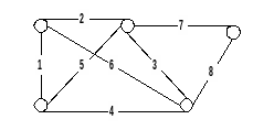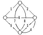 12. Пусть каждому ребру неориентированного графа соответствует некоторый элемент электрической цепи. Составить линейно независимые системы уравнений Кирхгофа для токов и напряжений. Пусть первому и пятому ребру соответствуют источники тока (