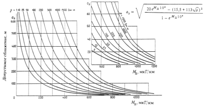 По вычисленной величине Мд для варианта подвижного состава с изолированным от земли корпусом с помощью кривых чертежа при заданном удельном сопротивлении земли r определяется допустимая эквивалентная ширина сближения аэ.