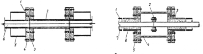 1- кожух; 2 - фланец; 3 - уплотнение; 4 - соединительная муфта; 5 -фланец; 6 - соединительная деталь; 7 - основная труба