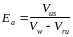 2.8. Коэффициент полезного использования воды на оросительной системе Еa необходимо определять как отношение объема полезно используемой воды на покрытие дефицита влаги в водном балансе сельскохозяйственных культур Vus, к разности объемов забираемой воды из водоисточника Vw, и вторично используемой воды на системе Vru, с учетом требований пп. 2.6 и 2.9: