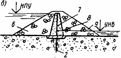 | Каменно-набросная талая | Экран из негрунтовых материалов (черт. 8, а) Диафрагма (черт. 8, б) | II |