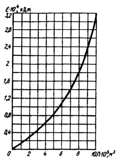 Черт. 4. График для определения энергоемкости предохраняющего устройства в зависимости от площади зеркала камеры шлюза