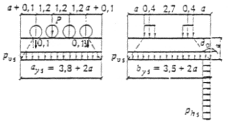 от низа шпалы (см. черт. 3) шириной by1 = 2,7 + 2а. Интенсивность вертикального давления следует определять по формуле