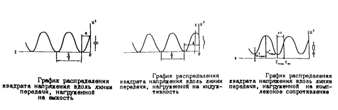 Расчетные графики распределения квадрата напряжения вдоль линии с различными нагрузками